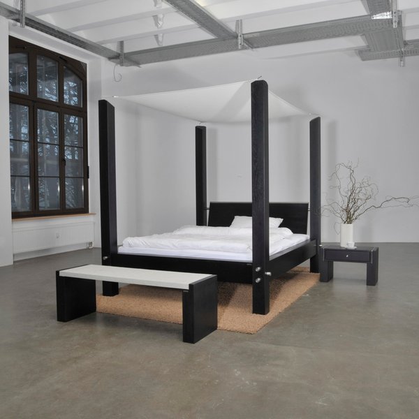 Di tipo completamente opposto invece, votati all’essenzialità ed al rigore delle forme, tutti i baldacchini ultramoderni costituiti essenzialmente da una struttura rigida e lineare, che ricalca perfettamente le fattezze di un cubo: di questo tipo ad esempio il letto Milleunanotte di Zanotta, Moheli di Orizzonti Italia o Ginevra di Valdichienti. Un’ulteriore evoluzione è rappresentata dal tecnologico e pluriaccessoriato “Hi Can” dall’aspetto quasi futuristico e dalle potenzialità fuori dal comune, tanto che chiamarlo letto può apparire davvero riduttivo! Creato dal designer Edoardo Carlino, anche grazie alla collaborazione del prof. Maurizio Muzzupappa, “Hi-Can” è a tutti gli effetti un isola del divertimento multisensoriale, multimediale e pluriaccessoriata nella quale è possibile fare diverse attività come: guardare un film o la tv grazie ad un grande proiettore a scomparsa, ascoltare musica ad alta definizione, giocare ai videogiochi ed il tutto creando l’atmosfera giusta grazie alla possibilità di regolare le luci.